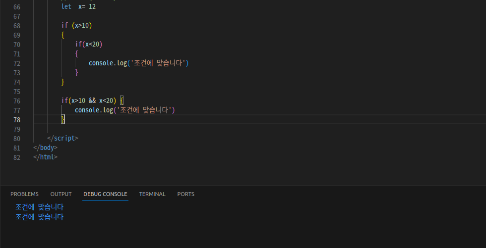 이유 : 10초과 20미만의 수를 동시에 만족할때를 말하므로 AND조건인 &&이다.
