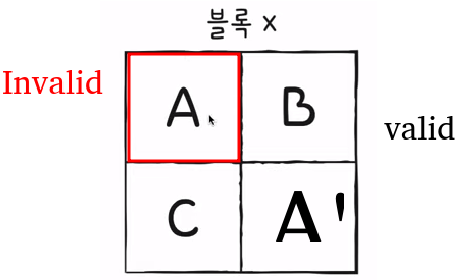 페이지 삭제는 불가하므로 Free페이지에 A' 추가하고 기존의 A는 Invalid로 변경하여 블록을 구성한다!