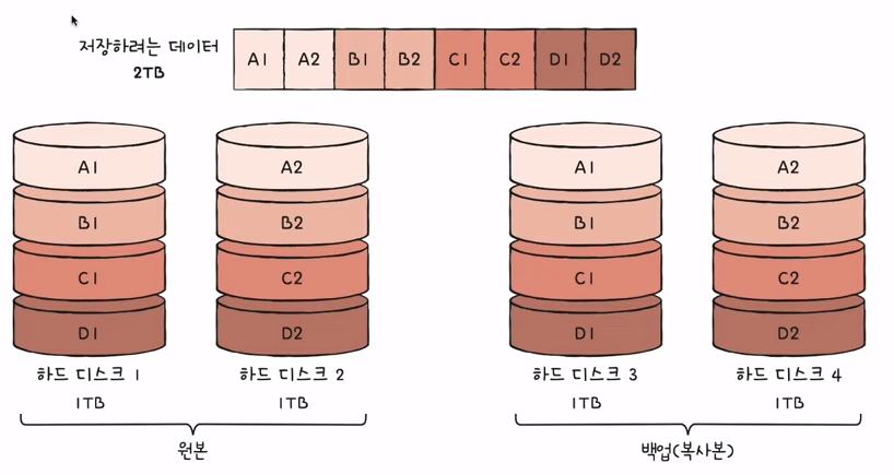 단점 : 하드 디스크 개수가 한정되었을 때 사용 가능한 용량이 적어짐