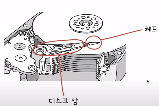 디스크 암 : 헤드를 원하는 위치로 이동시키는 부품