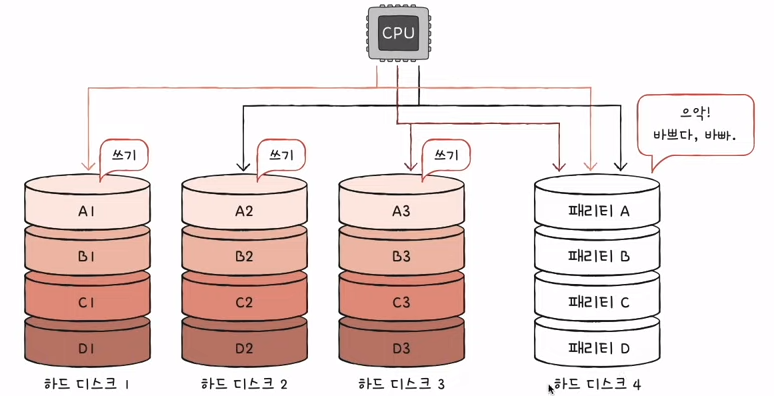 각 하드 디스크는 번갈아 가며 데이터를 저장한다.