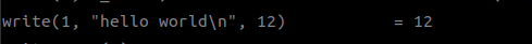 write() : 데이터를 화면이나 파일 등에 출력하는 시스템 콜 --> hello world\n을 표시해줍니다.