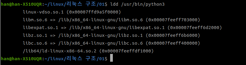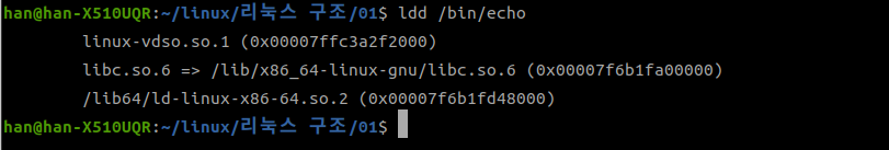 그리고 /lib64/ld-linux-x86-64.so.2의 경우 운영체제에서 제공하는 특별한 라이브러리 입니다.
