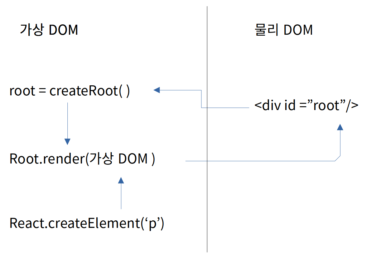 가상DOM은 document.body.appendChild로 이해하지 못하기 때문에 우리는 새로운 방식으로 랜더링 해야합니다.